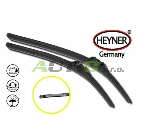 Kvalitní stěrače německé výroby HEYNER ALL SEASONS jsou vyrobeny nejmodernější technologií.Součástí každého balení je náhradní grafitová gumička.Grafitová gumička s přísadou teflonu zajišťuje bezchybnou funkci s extrémně dobrou přilnavostí a beznepříjemného odskakování od skla nebo protivného skřípání.Stěrače mají dlouhou životnost, až 1,8 milionu stíracích pohybů, grafitová gumička je vyměnitelná.Sada obsahuje :Stěrač pro řidiče o délce : 650Stěrač pro spolujezdce o délce :480Adaptér pro uchycení na rameno stěrače kód : 300420
